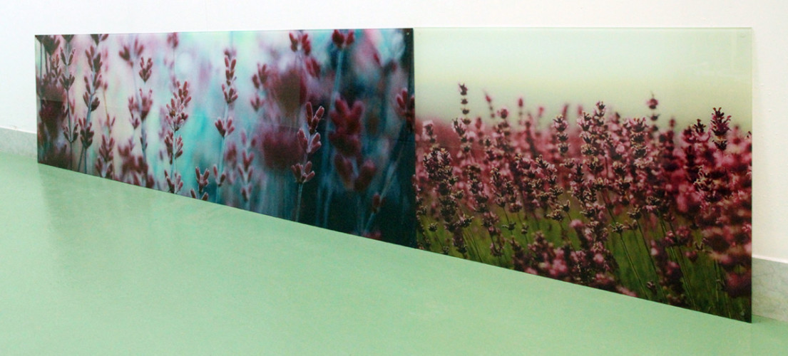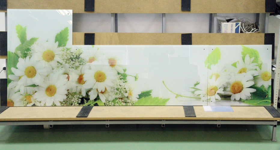 Фрагменты УФ печати выполнена на стекле для внутренней облицовки жилых комплексов