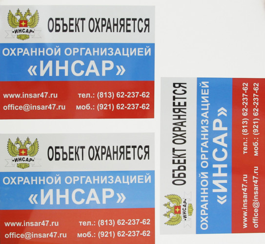 Наклейка для охранного предприятия выполнена на светоотражающей пленке с применением УФ печати