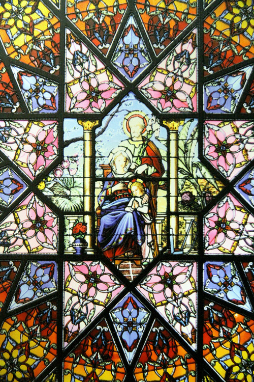 Имитация витража выполнена на стекле с применением УФ печати, высотой рельефа 0,8мм и лака